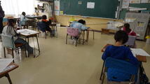 3~6年生が書きぞめの練習をしました。指導者をお招きして、お手本に近づけるためのポイントをたくさん教えていただきました。児童は、ポイント部分を何度も練習していました。