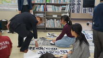 指導者を招聘した書きぞめ練習2回目を行いました。前回よりも上達した様子を見せられるよう、どの児童も熱心に書いていました。